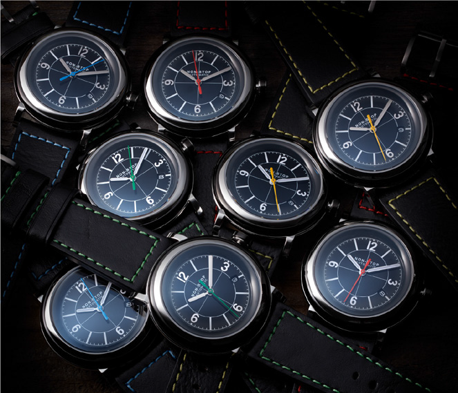 We have Leather Straps in Rich Black, Saddle Brown and Navy Blue and a Silicon Strap in Black with Red stripes. Our straps are supplied with a standard Tang buckle for $49 or with a Deployment buckle for $99. You can also purchase a Deployment buckle to add to your existing strap for $59. The optional Deployment buckle is really simple to use when it is set up for your wrist. The strap slides on easily and the deployment buckle snaps shut solidly. It offers greater security on your wrist and less wear and tear on your strap, as it does not need to be threaded and secured each time you wear your watch, Our straps are guaranteed against manufacturing defects for two years and the Non-Stop Watch box comes with a special compartment to keep your additional strap.